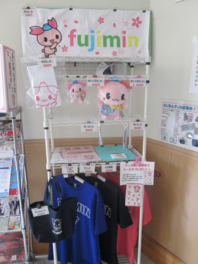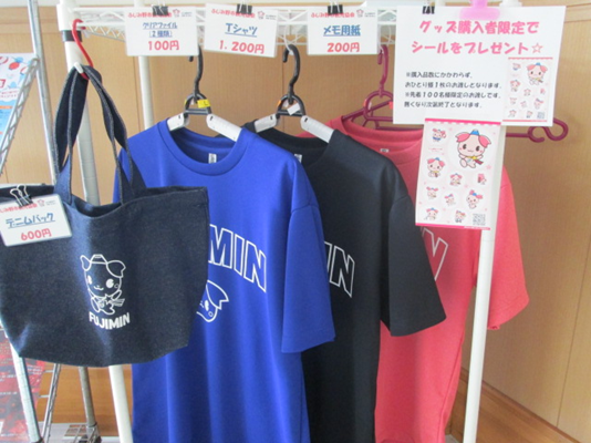 7月15日(火)から、ふじみんグッツの販売を開始しました。販売コーナーの見本をご覧いただき、ぜひご購入下さい。